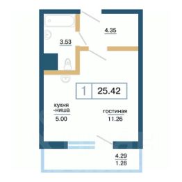 Продаётся 1-комнатная квартира в строящемся доме (Дом 11), срок сдачи: IV-кв. 2026, общей площадью 25.42 кв.м., на 7 этаже. Расположение, транспортная доступность Жилой комплекс ''Нанжуль-Солнечный'' - это квартал, в состав которого входит четырнадцать панельных зданий бюджетного класса высотой от 16 до 26 этажей, а также множество инфраструктурных объектов. Новостройка находится на северо-восточной окраине города, в Советском районе, на территории микрорайона Солнечный, рядом с Молодежным проспектом, улицами Соколовская, Ерофеевская, проспектом 60-летия образования СССР и Енисейским трактом. Путь от ''Нанжуль-Солнечного'' до центральной части города займет около получаса. За пять минут от комплекса можно доехать до железнодорожной станции Красноярск-Северный. Инфраструктура Собственная инфраструктура ''Нанжуль-Солнечного'' включает в себя: ФОК, взрослую и детскую поликлиники, женскую консультацию, несколько детских садов, общеобразовательную школу, а также офисы, магазины, сервисные и оздоровительные учреждения на нижних этажах и во встроенно-пристроенных помещениях. Рядом с кварталом находятся: детские сады 112, 328, 326, частный детский сад ''Сорванцы'', аква-клуб ''Утята'', детская больница 8, детская поликлиника 1, городская больница 2, родильный дом 1, почта, филиал Сбербанка, школы 144, 139, 134, рынок ''Простоквашино'', супермаркет ''Командор'', магазины ''Солнечный'', ''Березовский'', ''Ярмарка'', пансионат ''Солнечный''. За пять минут от ''Нанжуль-Солнечного'' можно доехать до инфраструктуры, расположенной около железнодорожной станции Красноярск-Северный, в микрорайоне Метростроитель: торговые центры, гипермаркеты, гастроном ''Красный Яр'', супермаркет ''Командор'', спорткомплекс ''Красноярск''. В пятнадцати минутах езды от комплекса находится микрорайон ''Взлетка'', в котором работают: крупнейшие торгово-развлекательные центры Красноярска ''Планета'' и ''Июнь'', торговые центры ''Взлетка Плаза'', Dommer, торговый комплекс ''Авиатор'', торгово-офисный комплекс ''Арбат'', гипермаркеты ''Лента'', ''Декатлон'', ''Леруа Мерлен'', международный выставочно-деловой центр ''Сибирь'', бизнес-центры ''Весна'', ''Сирус'', 30-этажный деловой центр ''Первая башня'', Институт психолого-педагогического образования, рынок ''Новая взлетка'', Енисейский рынок, ледовый дворец ''Кристалл''. Экологическая обстановка в месте расположения квартала хорошая. Комплекс находится на окраине города, поблизости от пригородных зон, лесов и озер, вдали от промышленных предприятий, на некотором расстоянии от крупных автотрасс. Надежность застройщика Жилой комплекс ''Нанжуль-Солнечный'' - это масштабный проект созданной в 1989 году красноярской компании ''Сибиряк''. Это одна из самых крупных строительных компаний Красноярска, на счету которой десятки реализованных проектов. Компания ''Сибиряк'' строит не только жилые дома, но и детские сады, больницы и спортивные объекты (в частности, она построила несколько объектов для Всемирной зимней Универсиады 2019 года). Помимо ''Нанжуль-Солнечного'' на счету компании ''