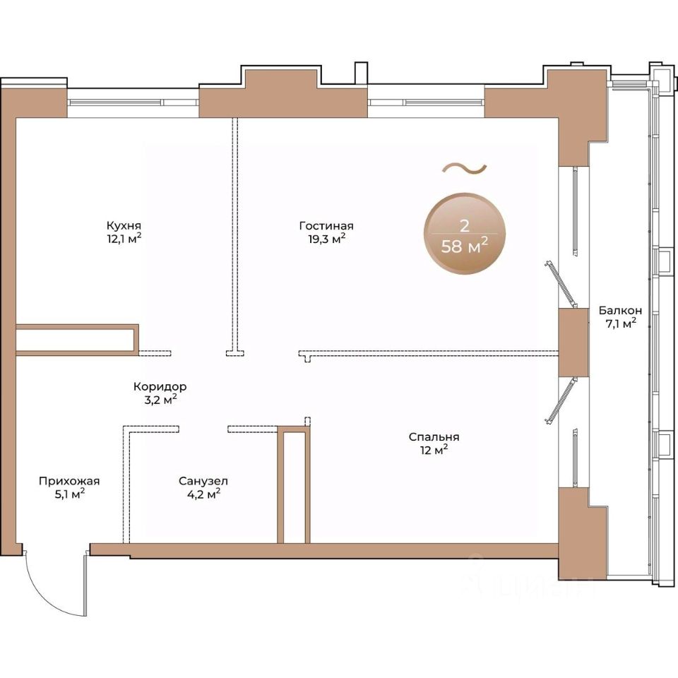 55 м² · Этаж 19 из 21
