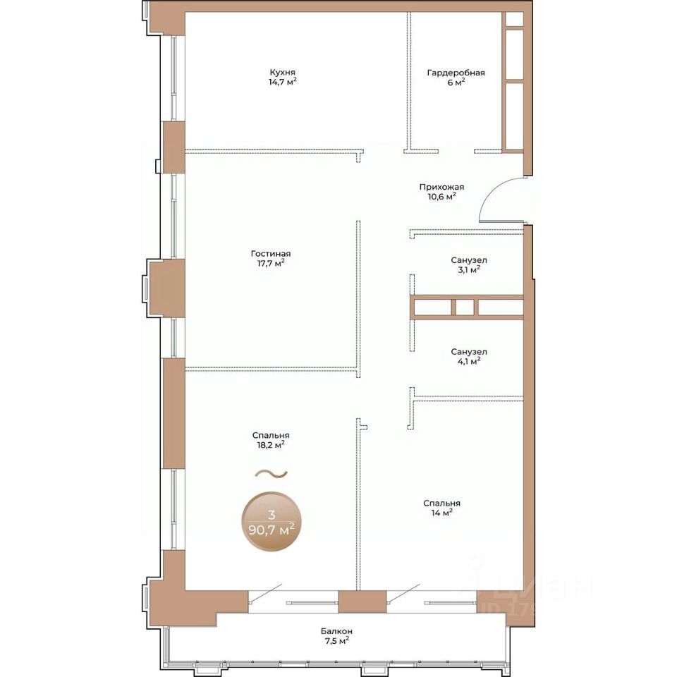 90 м² · Этаж 10 из 24