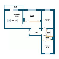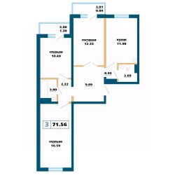 Продаётся 3-комнатная квартира в строящемся доме (Дом 12), срок сдачи: IV-кв. 2027, общей площадью 71.56 кв.м., на 2 этаже. Расположение, транспортная доступность Жилой комплекс ''Нанжуль-Солнечный'' - это квартал, в состав которого входит четырнадцать панельных зданий бюджетного класса высотой от 16 до 26 этажей, а также множество инфраструктурных объектов. Новостройка находится на северо-восточной окраине города, в Советском районе, на территории микрорайона Солнечный, рядом с Молодежным проспектом, улицами Соколовская, Ерофеевская, проспектом 60-летия образования СССР и Енисейским трактом. Путь от ''Нанжуль-Солнечного'' до центральной части города займет около получаса. За пять минут от комплекса можно доехать до железнодорожной станции Красноярск-Северный. Инфраструктура Собственная инфраструктура ''Нанжуль-Солнечного'' включает в себя: ФОК, взрослую и детскую поликлиники, женскую консультацию, несколько детских садов, общеобразовательную школу, а также офисы, магазины, сервисные и оздоровительные учреждения на нижних этажах и во встроенно-пристроенных помещениях. Рядом с кварталом находятся: детские сады 112, 328, 326, частный детский сад ''Сорванцы'', аква-клуб ''Утята'', детская больница 8, детская поликлиника 1, городская больница 2, родильный дом 1, почта, филиал Сбербанка, школы 144, 139, 134, рынок ''Простоквашино'', супермаркет ''Командор'', магазины ''Солнечный'', ''Березовский'', ''Ярмарка'', пансионат ''Солнечный''. За пять минут от ''Нанжуль-Солнечного'' можно доехать до инфраструктуры, расположенной около железнодорожной станции Красноярск-Северный, в микрорайоне Метростроитель: торговые центры, гипермаркеты, гастроном ''Красный Яр'', супермаркет ''Командор'', спорткомплекс ''Красноярск''. В пятнадцати минутах езды от комплекса находится микрорайон ''Взлетка'', в котором работают: крупнейшие торгово-развлекательные центры Красноярска ''Планета'' и ''Июнь'', торговые центры ''Взлетка Плаза'', Dommer, торговый комплекс ''Авиатор'', торгово-офисный комплекс ''Арбат'', гипермаркеты ''Лента'', ''Декатлон'', ''Леруа Мерлен'', международный выставочно-деловой центр ''Сибирь'', бизнес-центры ''Весна'', ''Сирус'', 30-этажный деловой центр ''Первая башня'', Институт психолого-педагогического образования, рынок ''Новая взлетка'', Енисейский рынок, ледовый дворец ''Кристалл''. Экологическая обстановка в месте расположения квартала хорошая. Комплекс находится на окраине города, поблизости от пригородных зон, лесов и озер, вдали от промышленных предприятий, на некотором расстоянии от крупных автотрасс. Надежность застройщика Жилой комплекс ''Нанжуль-Солнечный'' - это масштабный проект созданной в 1989 году красноярской компании ''Сибиряк''. Это одна из самых крупных строительных компаний Красноярска, на счету которой десятки реализованных проектов. Компания ''Сибиряк'' строит не только жилые дома, но и детские сады, больницы и спортивные объекты (в частности, она построила несколько объектов для Всемирной зимней Универсиады 2019 года). Помимо ''Нанжуль-Солнечного'' на счету компании ''