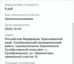 Земельный участок, Сухобузимское