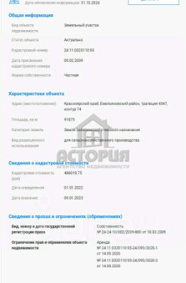Готовый фундамент (75 соток, ИЖС+ЛПХ)!Стройплощадка для масштабных проектов. Рядом Федеральная трасса, электричество, озеро! Вам больше не нужно годами искать участок, завозить материалы и ждать у моря погоды.. Здесь ВСЕ готово для старта вашего крупного проекта! Это не просто земля это почти готовый объект с огромным потенциалом.Что вы приобретаете по факту?Масштаб:Участок 0,75 Га (75 соток) с четким зонированием: 25 соток под ИЖС (для дома до 3-х этажей!) и 50 соток под ЛПХ (для любой вашей деятельности).Отличная транспортная доступность: Всего 395 метров от федеральной трассы и АЗС. Идеально для логистики, бизнеса и комфортной жизни. Круглогодичный подъезд, с двух сторон дороги.Готовый фундамент и каркас под капитальное строение 990 м²!Зачем тратить годы и миллионы с нуля?На участке уже возведено:Прочное каменное основание с уложенными бетонными плитами пола. Есть подтверждения покупки материалов.Смонтированы 26 мощных вертикальных стоек (около 4 метра) для монтажа крыши.Фактически, осталось смонтировать фермы и накрыть кровлю и вы получаете огромное, готовое помещение.Для кого этот объект?Для бизнеса: Готовый фундамент под производственный цех, складской комплекс, агрохолдинг, фермерское хозяйство или базу отдыха.Для частных лиц: Место для постройки родового поместья. На 25 сотках ИЖС строите шикарный дом, а на 50 сотках ЛПХ организуете личное хозяйство, конюшню или огромный сад.Для инвесторов: Уникальное предложение с высоким потенциалом роста стоимости после завершения строительства.Важные юридические и технические моменты:Собственник! Продаю лично.Есть разрешение на капитальное строительство зданий до 3-х этажей на участке ЛПХ, но не более 40% от площади участка (2000 кв.м). На остальной площади можно возводить строения не более 1.5 тонн. Подключение электричества максимально упрощено опоры на границе и в 6 метрах от участка.Земля в аренде с правом выкупа в собственность всего за 2,5% от кадастровой стоимости после возведения жилья от 35 м².Это огромное преимущество по цене!Кадастровый номер ЛПХ: 24:40:0340403:101 Кадастровый номер ИЖС: 24:40:0340403:276И очень приятный бонус: Всего, примерно, в 2.4 км живописное озеро для рыбалки и отдыха, вокруг лес и свежий воздух.Это предложение для тех, кто мыслит стратегически и ценит свое время и деньги. Вы избегаете долгой и дорогой стадии нулевого цикла и получаете объект под ключ в кратчайшие сроки.Цена обсуждается только при серьезном подходе. Звоните, чтобы назначить просмотр и обсудить детали. Действуйте, пока такой шанс есть в наличии!P.S. Фото дорог сделаны после ливней.