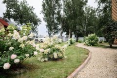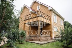 Дом находится вблизи деревни Ермолаево. Подъезд к дому круглогодичный, по асфальту и гравийке, дорогу в зимнее время чистят постоянно. Дом расположен в березовой роще (в тупике), одни соседи за забором. С другой стороны — природоохранная зона, то есть никто никогда не заселится. Дальний забор граничит с пожарным озером, где летом можно наблюдать уток, выводящих своих утят плавать.По документам земли в собственности 33 сотки, по факту ограждено забором порядка 45 соток. По всему периметру участка снят верхний слой дёрна, выровнен в толстый слой привозным чернозёмом и засеян спортивным газоном. Установлена система орошения на основные деревья, рокарий и кустарники. На участке высажен яблоневый сад (около 11 деревьев), две груши, сливы, абрикосы, виноград, смородина белая, смородина красная, смородина чёрная, жимолости. Вишня, крыжовник, облепиха и очень много малины. Теплица 3*6 м и около 30 высоких грядок с привозной землёй. 15 кустов гортензий, рокарий у входа с еловыми деревьями. Разнообразные ели, туя, кедры. На территории отдельно стоящие здания: 1) баня 6*6 м, 2) остеклённая беседка примерно 20 м2, 3) технический гараж, 4) детская площадка.На территории своя скважина и септик.Баня установлена на винтовых сваях, из бруса 150*150. Из дома в баню проведена холодная вода. Баня утеплена и обшита металлическим сайдингом. Изнутри отделана вагонкой 1-го сорта. Отдельно комната отдыха, помывочная, парилка.Дом на газовом отоплении, установлен газгольдер на 2-е тонны, в доме газовый котёл. В дом заведены 2 фазы, на каждую фазу установлен отдельный бесперебойник. Дом сделан из бруса 150 * 150, снаружи утеплён минватой 100 + металлическая сайдинг-система, изнутри внешние стены утеплены пробковым покрытием. Первый этаж примерно 85 м2, второй этаж примерно 80м2, третий примерно 50м2. Строительство дома завершили в 2019 г. На первом этаже прихожая, техкомната, совмещённый санузел, большая гостиная, кухня со столом-островом. Установлен тёплый пол по всему первому этажу. Отделка стен на первом этаже — вагонка 200-ая. На полу плитка ПВХ. С первого этажа на улицу есть 3 выхода, один из них выходит на крытую веранду. Деревянная лестница с балясинами до 3-его этажа.На втором этаже 3 больших спальни. Из 1-ой из них есть выход на террасу. Также на этом этаже находится санузел, большая гардеробная. Третий этаж состоит из 2-х отдельных помещений. Ремонт на 3-ем этаже не закончен, но все коммуникации подведены и выполнена черновая отделка.