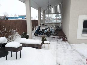 Продается дом в тихом и живописном районе села Сухобузимское. Дом очень светлый, много окон (в том числе витражные), теплый. Дом расположен в глубине участка. В доме: прихожая, зал, кухня-столовая, 3 спальни, гардеробная комната и кабинет. Все спальные комнаты отдельные (не проходные), 2 сан узла и ванная комната. Большая кухня- столовая (24 кв) с 2мя выходами во двор. Имеется балкон в одной из комнат. Есть как центральное водоснабжение , так и скважина (подача воды, при переключении, автоматическая).Котельная отдельно от дома из блоков, установлен автоматический польский котел DEFRO с бункером на 150 кг топлива (работает на разных видах твердого топлива. Участок обнесен забором из профлиста со столбами из кирпича, вход с подсветкой. Отделка дома и забор, в сочетаемом между собой цветовом решении. На участке имеется зона отдыха (беседка + искусственный водоем), детский уголок с домиком песочницей и качелей. При входе на участок сразу попадаешь в сад. В котором большое количество плодовых и декоративных кустарников и деревьев (яблони, вишни, сливы, груши, смородина, жимолость, голубика и тд. все плодоносят. На участке построен очень удобный вольер для собаки с бетонным основанием ограждения. Имеется баня (с помывочной и комнатой отдыха), гараж 9*5,5(со смотровой ямой (освещаемая), уличный душ. Ворота в гараж и на участок (ворота с подсветкой) автоматические Doorhan. На участке проведено уличное освещение. Имеются хозяйственные постройки под инвентарь, углярка, дровенник. Огород от территории ограды отделен металлическим штакетником. На территории огорода 3 теплицы 3*4 (дорожки и основание в них бетонные) и парник 2*1,5, 3 высокие гряды под зелень и выделены участки под чайный (аптекарский) огород и викторию. Площадь огорода без теплиц и участка под викторию - 6 соток, с теплицами 8 соток. В пешей доступности детский сад, школа, спортивный комплекс.
