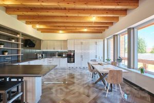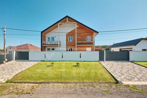 Продам коттедж в мкр. Покровка на ул. Офицерская, д.42. Коттедж расположен на участке 11 соток. Общая площадь коттеджа 302,6 кв.м., два этажа + цоколь. На первом этаже расположена просторная гостиная, комната, кухня (21,5 к.в.м) и совмещенный просторный санузел (8 кв.м.). На втором этаже 3 просторные комнаты (22,4, 14,7, 21,8 кв.м.), совмещенный санузел и холл (32 кв.м.). В цокольном этаже расположена котельная и погреб. Фундамент бетонные плиты. Материал дома брус 18*18, снаружи обложен качественным кирпичом. Отопление твёрдотопливный котел + электроотопление. На участке расположены два гаража (каждый на две машины), баня и полноценный, полностью благоустроенный хозяйственный дом (например, для персонала). На участке насаждения (вишня, груша, яблони и др.) + 2 теплицы. Два въезда на участок. Коттедж расположен на границе с Покровским мкр. Очень удачное расположение! Чистая продажа! Без ограничений и обременений, один взрослый собственник.