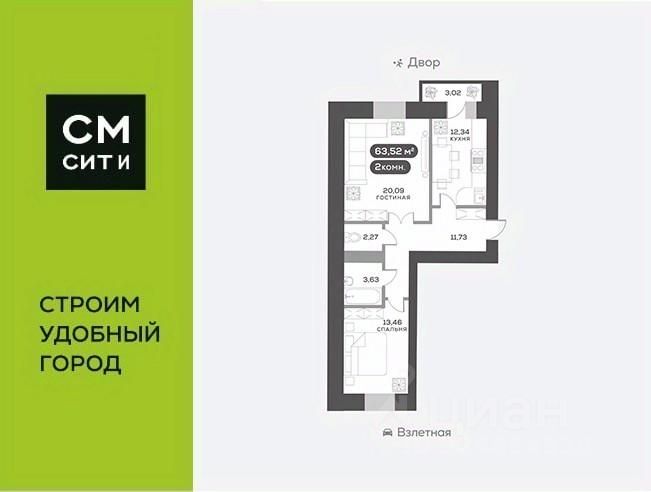 Продаётся 2-комнатная квартира в строящемся доме (Дом 13А), срок сдачи: II-кв. 2026, общей площадью 58.66 кв.м., на 2 этаже. Расположение, транспортная доступность Жилой комплекс ''Нанжуль-Солнечный'' - это квартал, в состав которого входит четырнадцать панельных зданий бюджетного класса высотой от 16 до 26 этажей, а также множество инфраструктурных объектов. Новостройка находится на северо-восточной окраине города, в Советском районе, на территории микрорайона Солнечный, рядом с Молодежным проспектом, улицами Соколовская, Ерофеевская, проспектом 60-летия образования СССР и Енисейским трактом. Путь от ''Нанжуль-Солнечного'' до центральной части города займет около получаса. За пять минут от комплекса можно доехать до железнодорожной станции Красноярск-Северный. Инфраструктура Собственная инфраструктура ''Нанжуль-Солнечного'' включает в себя: ФОК, взрослую и детскую поликлиники, женскую консультацию, несколько детских садов, общеобразовательную школу, а также офисы, магазины, сервисные и оздоровительные учреждения на нижних этажах и во встроенно-пристроенных помещениях. Рядом с кварталом находятся: детские сады 112, 328, 326, частный детский сад ''Сорванцы'', аква-клуб ''Утята'', детская больница 8, детская поликлиника 1, городская больница 2, родильный дом 1, почта, филиал Сбербанка, школы 144, 139, 134, рынок ''Простоквашино'', супермаркет ''Командор'', магазины ''Солнечный'', ''Березовский'', ''Ярмарка'', пансионат ''Солнечный''. За пять минут от ''Нанжуль-Солнечного'' можно доехать до инфраструктуры, расположенной около железнодорожной станции Красноярск-Северный, в микрорайоне Метростроитель: торговые центры, гипермаркеты, гастроном ''Красный Яр'', супермаркет ''Командор'', спорткомплекс ''Красноярск''. В пятнадцати минутах езды от комплекса находится микрорайон ''Взлетка'', в котором работают: крупнейшие торгово-развлекательные центры Красноярска ''Планета'' и ''Июнь'', торговые центры ''Взлетка Плаза'', Dommer, торговый комплекс ''Авиатор'', торгово-офисный комплекс ''Арбат'', гипермаркеты ''Лента'', ''Декатлон'', ''Леруа Мерлен'', международный выставочно-деловой центр ''Сибирь'', бизнес-центры ''Весна'', ''Сирус'', 30-этажный деловой центр ''Первая башня'', Институт психолого-педагогического образования, рынок ''Новая взлетка'', Енисейский рынок, ледовый дворец ''Кристалл''. Экологическая обстановка в месте расположения квартала хорошая. Комплекс находится на окраине города, поблизости от пригородных зон, лесов и озер, вдали от промышленных предприятий, на некотором расстоянии от крупных автотрасс. Надежность застройщика Жилой комплекс ''Нанжуль-Солнечный'' - это масштабный проект созданной в 1989 году красноярской компании ''Сибиряк''. Это одна из самых крупных строительных компаний Красноярска, на счету которой десятки реализованных проектов. Компания ''Сибиряк'' строит не только жилые дома, но и детские сады, больницы и спортивные объекты (в частности, она построила несколько объектов для Всемирной зимней Универсиады 2019 года). Помимо ''Нанжуль-Солнечного'' на счету компании