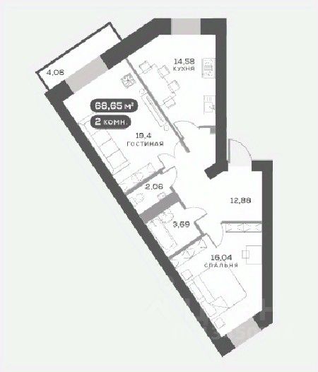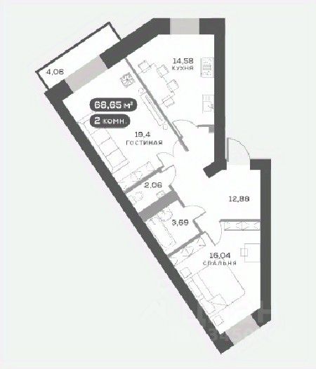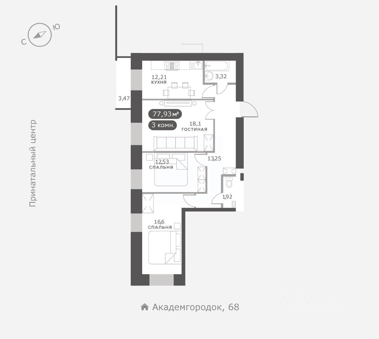 68 м² · Этаж 6 из 15