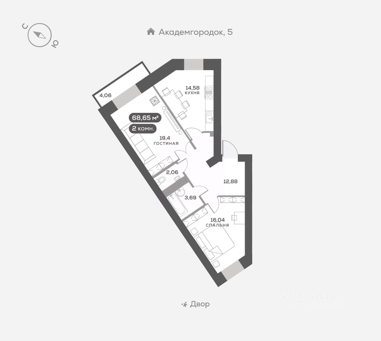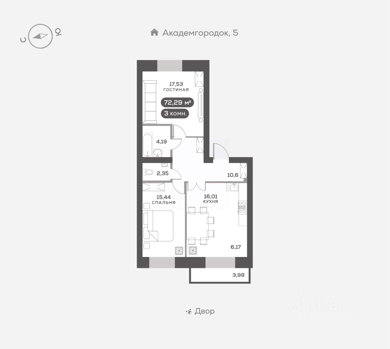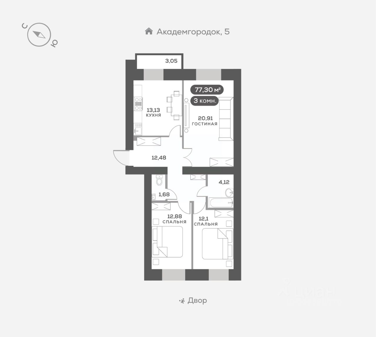 3-к, Академгородок, 8
