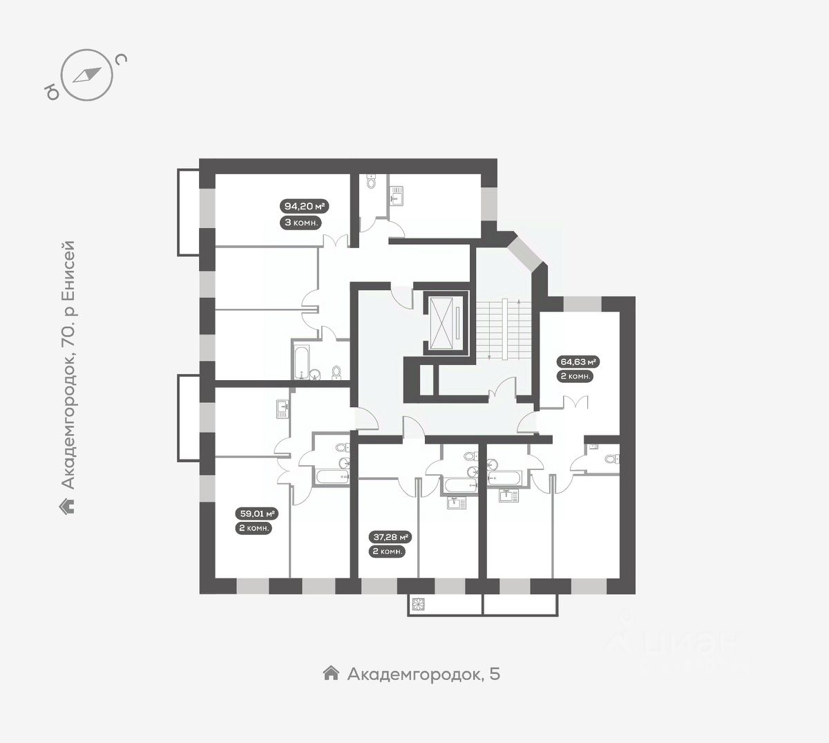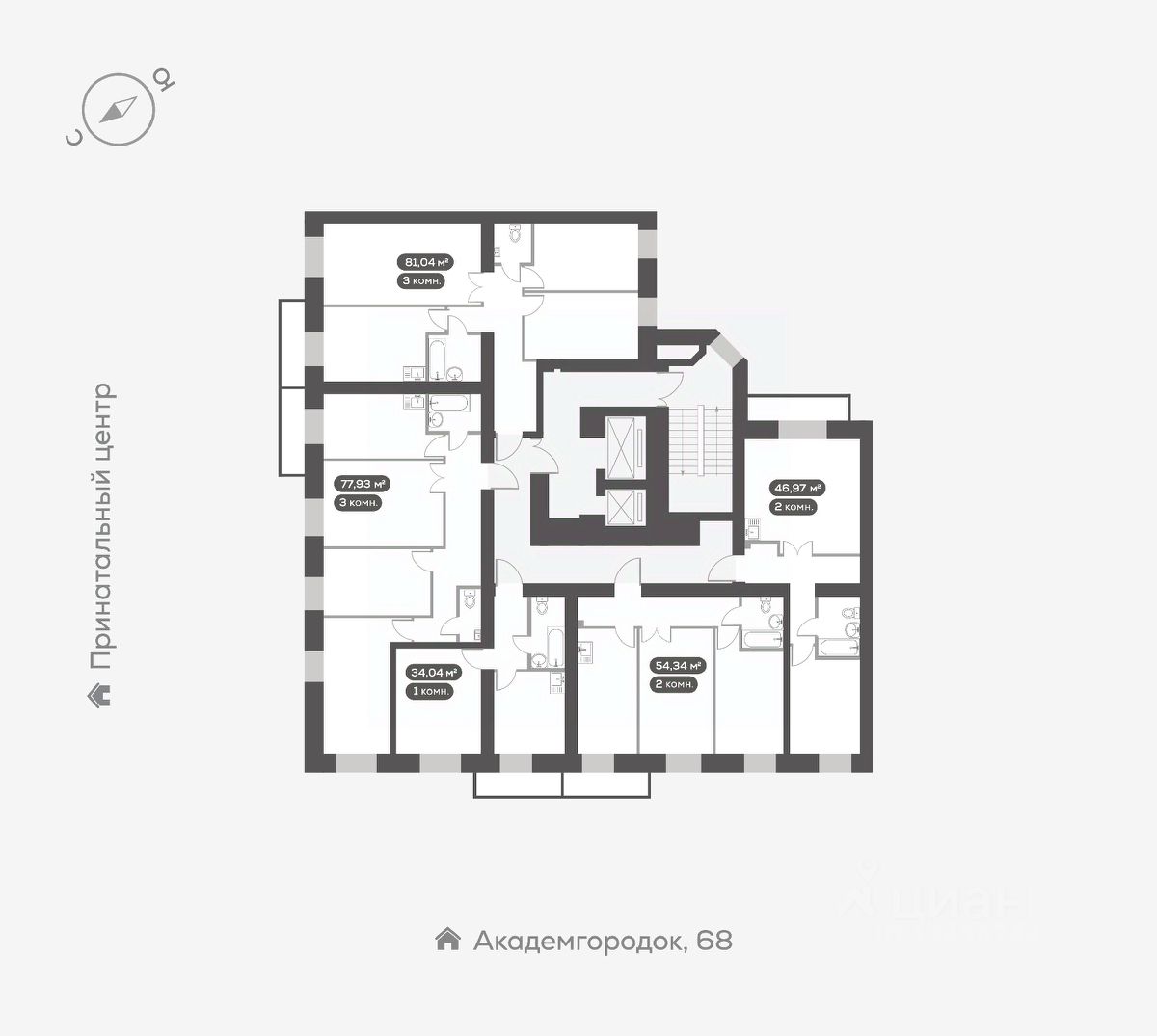 Академгородок, Дом 3, квартира 351. Новый Академгородок - сити-район из восьми кирпичных домов-кварталов на берегу Енисея. Близость природы, закрытые дворы и свой собственный Академ-парк. Для тех, кто хочет жить рядом с городом, но дышать чистым воздухом. Квартира сдается в отделке ''белый куб''. Выровнены и оштукатурены стены, бетонная стяжка на полу, натяжной потолок, полная электроподготовка и установлена базовая сантехника. Вы получаете ключи от квартиры, подготовленной к воплощению ваших фантазий.