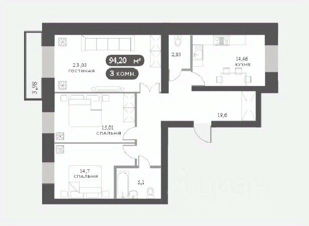 94 м² · Этаж 3 из 15