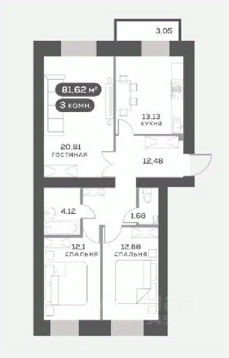 43 м² · Этаж 2 из 13