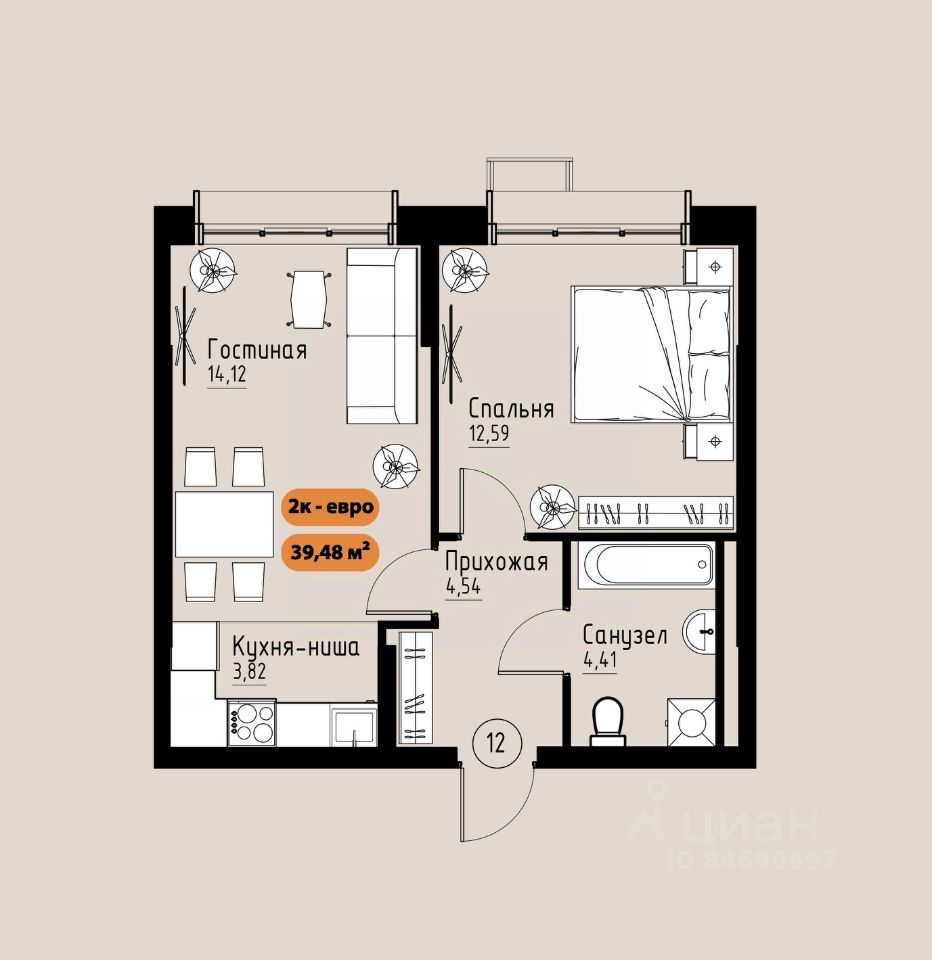 42 м² · Этаж 12 из 17
