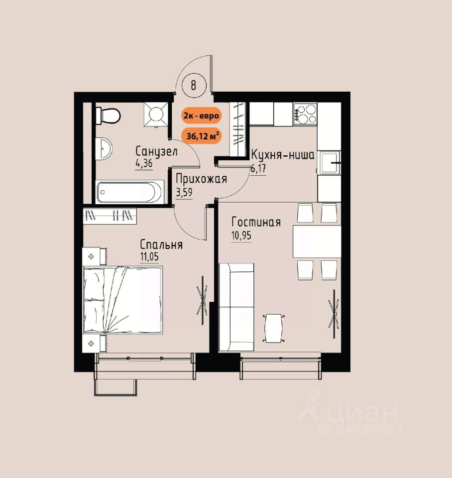 36 м² · Этаж 2 из 17
