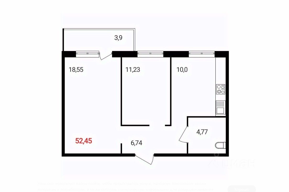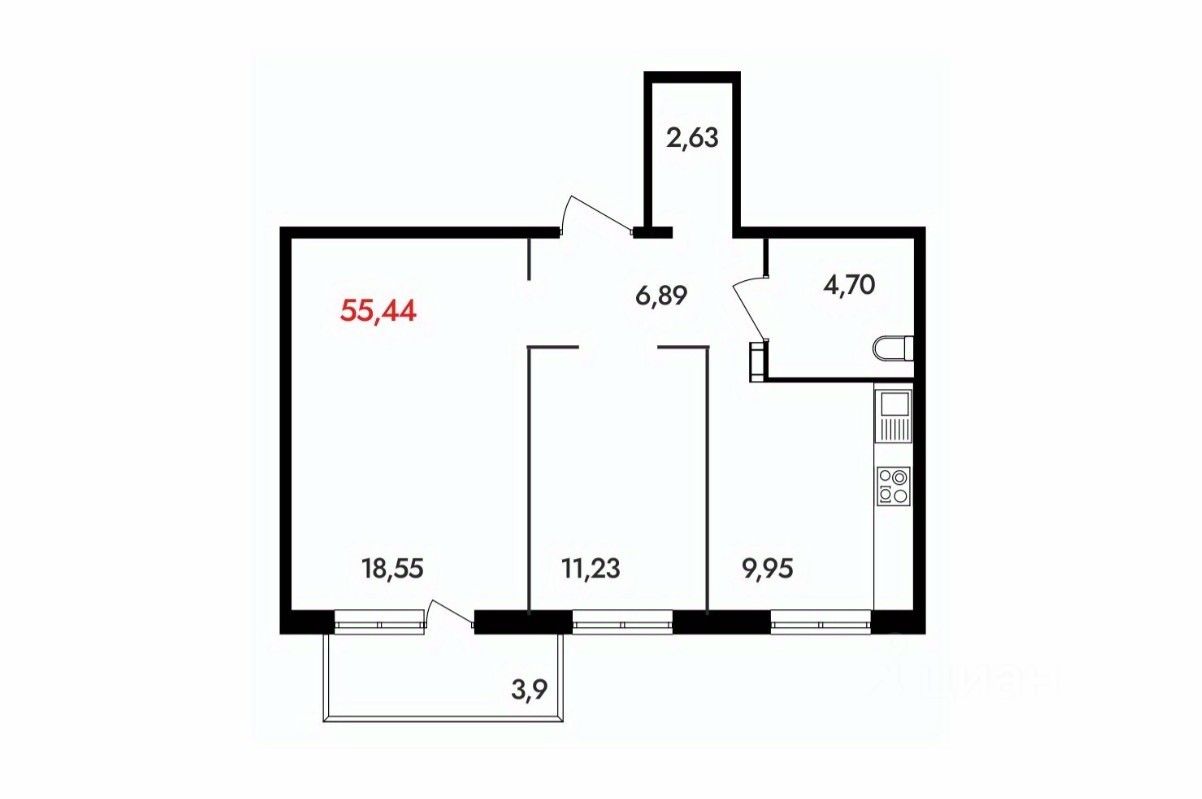 55 м² · Этаж 3 из 18
