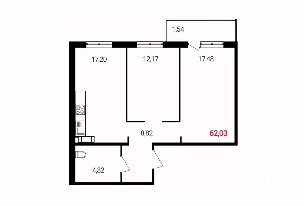 62 м² · Этаж 17 из 18
