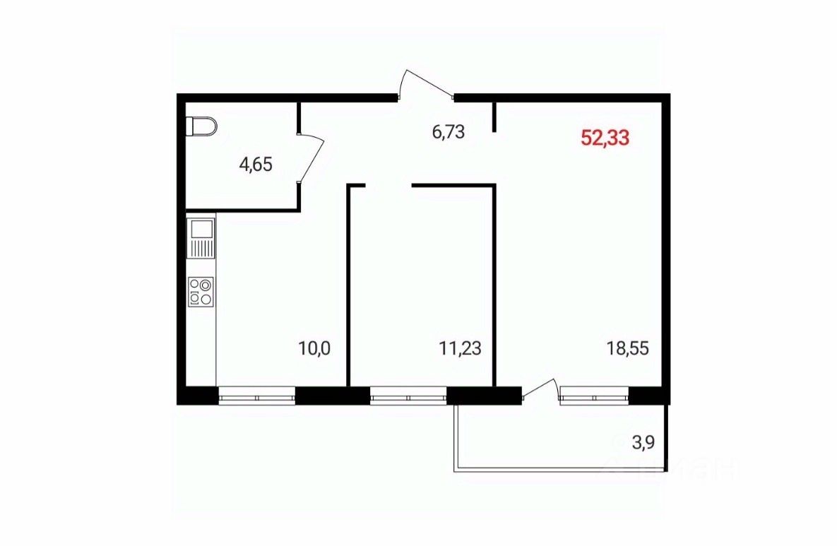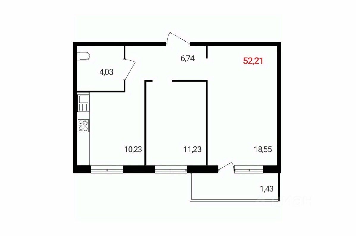 52 м² · Этаж 15 из 18