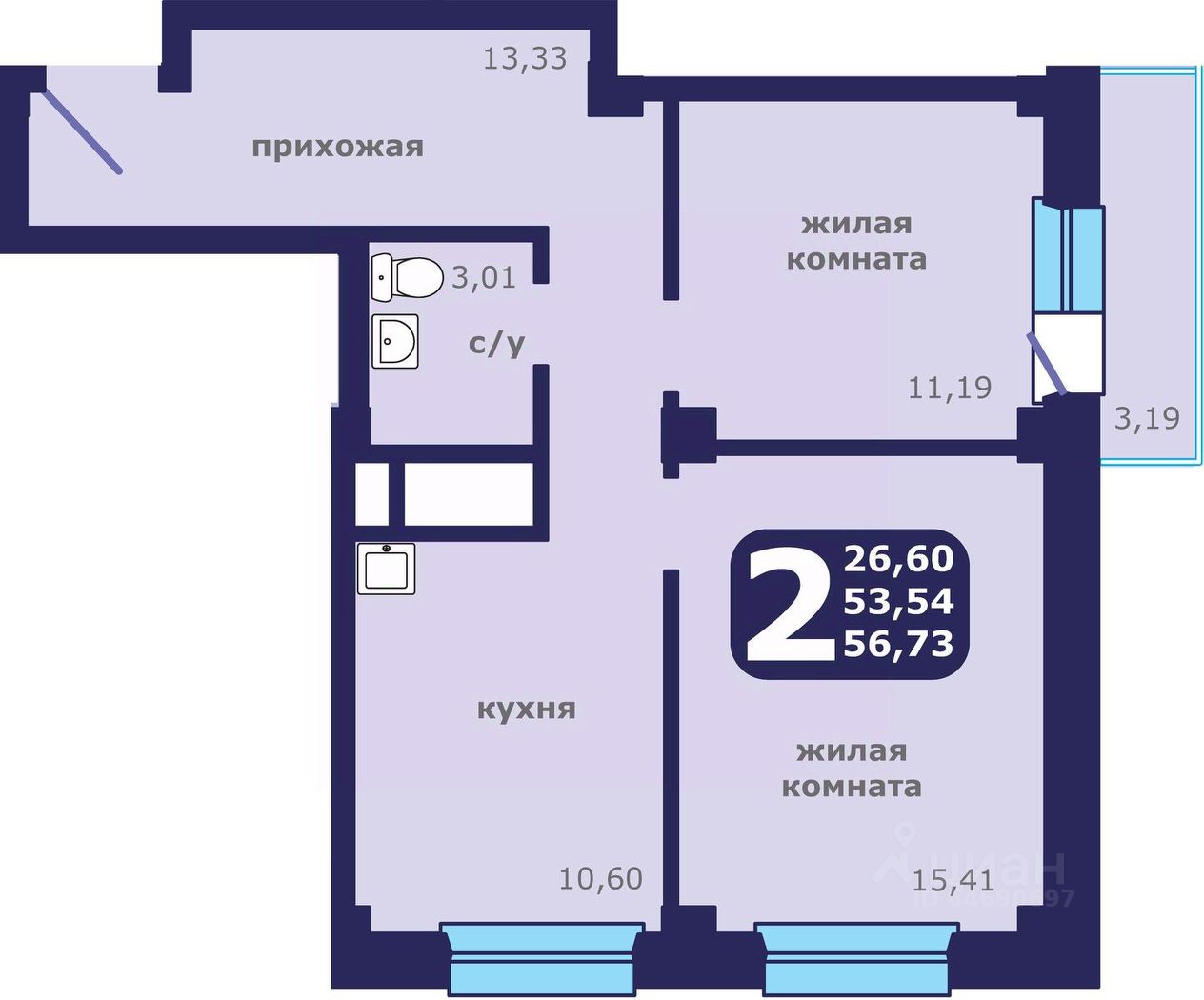 56 м² · Этаж 15 из 25