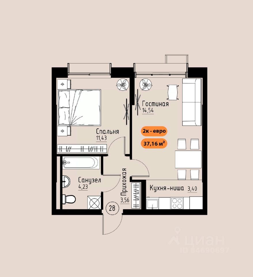 37 м² · Этаж 6 из 17