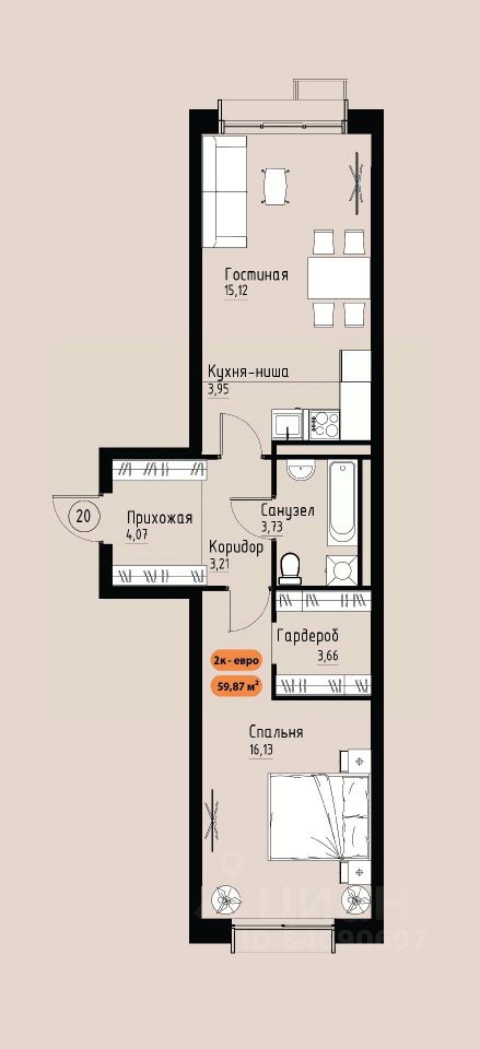 20 м² · Этаж 7 из 17