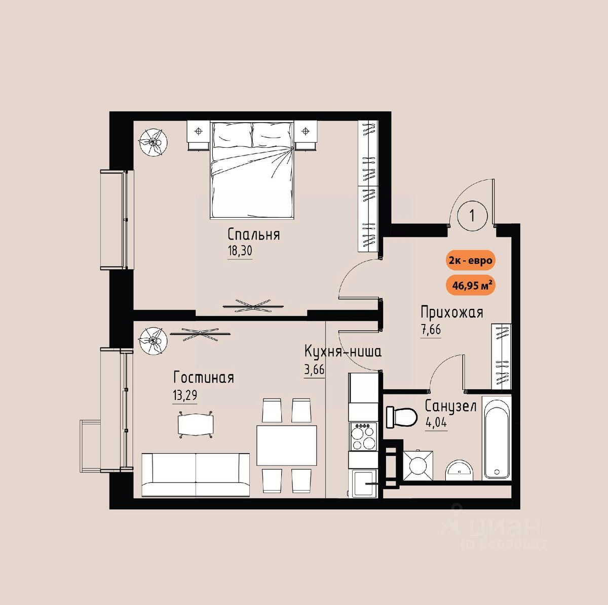 46 м² · Этаж 8 из 17