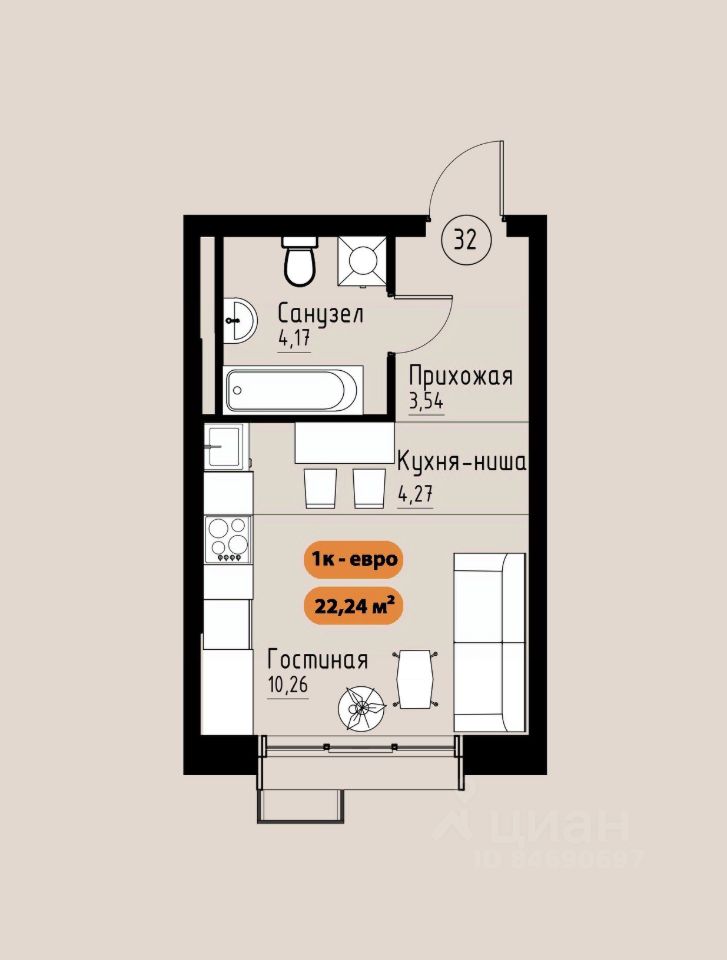 22 м² · Этаж 6 из 17
