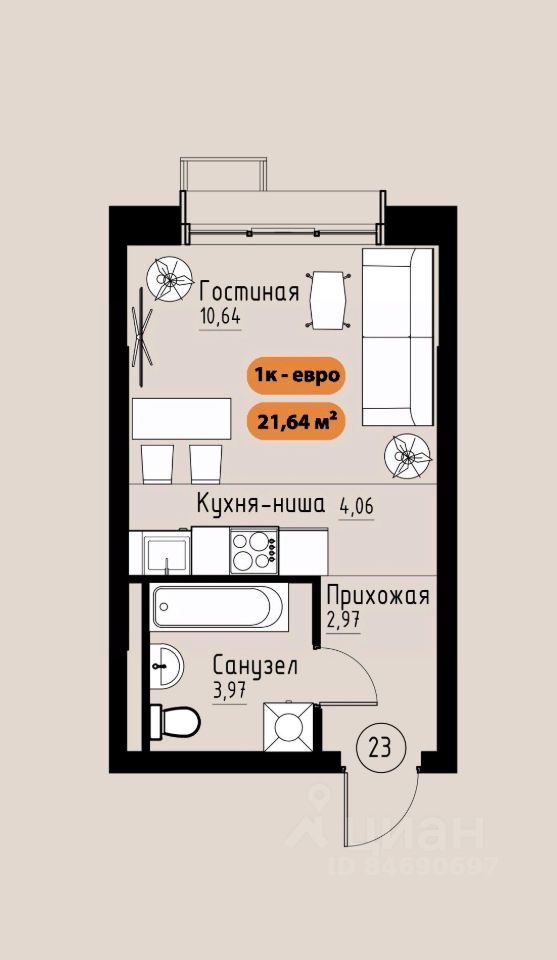 21 м² · Этаж 10 из 17