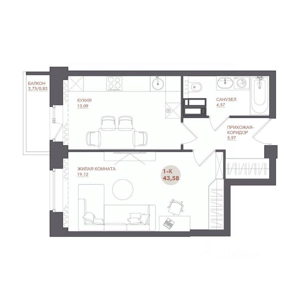 43 м² · Этаж 6 из 17