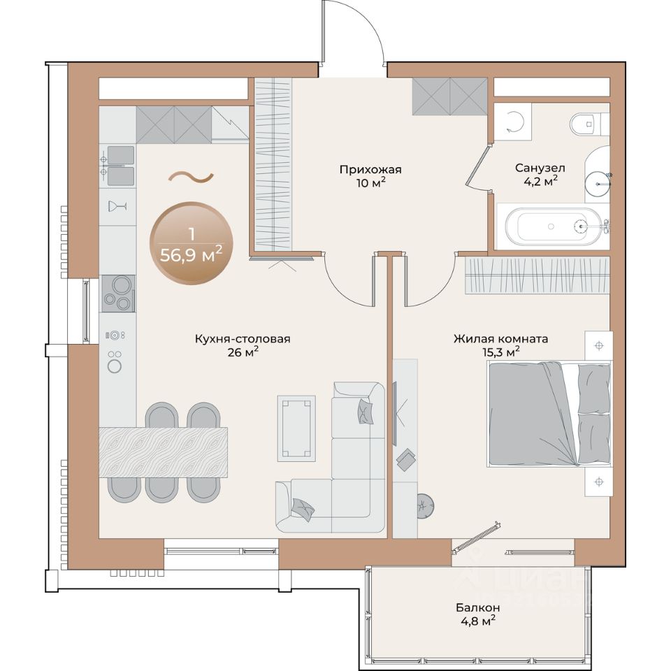 Продаётся 1-комнатная квартира в сданном доме (Соколовская, 52 (Дом 11)), срок сдачи: III-кв. 2024, общей площадью 34.1 кв.м., на 14 этаже. Кирпичные дома на улице Соколовской города Красноярск. Застройщиком домов выступает ООО ''РБК''. Жилой комплекс ''Снегири'' расположен в экологически чистом районе города, в микрорайоне с развитой инфраструктурой. В шаговой доступности детский сад, школа.,