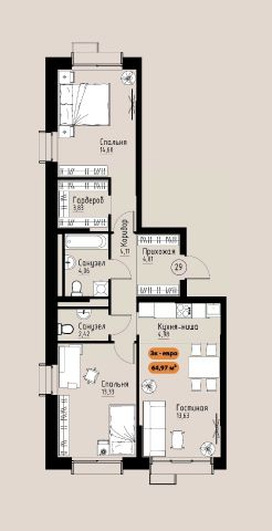 Продаётся 1-комнатная квартира в строящемся доме (Премьер парк), срок сдачи: III-кв. 2029, общей площадью 22.24 кв.м., на 5 этаже. Жилой комплекс ''Премьер Парк'' расположен в живописном микрорайоне Тихие Зори города Красноярска, неподалеку от реки Енисей и знаменитого железнодорожного моста, удостоенного гран-при наравне с Эйфелевой башней. Вблизи комплекса находятся такие достопримечательности, как фан-парк ''Бобровый Лог'', заповедник ''Столбы'' и река Базаиха с её живописной поймой. Чтобы провести время на природе понадобиться потратить всего несколько минут на дорогу. Преимущества близкого расположения к заповеднику ''Столбы'' и фан-парку ''Бобровый Лог'' делают ''Премьер Парк'' идеальным выбором для тех, кто ценит активный и здоровый образ жизни, природу и удобства современной инфраструктуры. Жители могут легко сочетать городской комфорт с активным отдыхом на природе, наслаждаясь лучшими из обоих миров. Развитая транспортная инфраструктура позволяет добраться до центра города всего за 10 минут. Кроме того, рядом расположен спортивно-зрелищный центр ''Платинум Арена'', принимающий большое количество развлекательных и спортивных мероприятий различного масштаба. Около 2000 тысяч квадратных метров займёт ритейл с нежилыми помещениями , в которых разместяться магазины, кафе, рестораны, кофейни.Что избавит жителей жилого комплекса от необходимости лишний покидать территорию своего дома. Первая очередь строительства жилого комплекса ''Премьер Парк'' ознаменует начало создания нового уникального микрорайона с современной архитектурой и особым подходом к комфортному и гармоничному проживанию. Одной из архитектурных особенностей комплекса станет дом, построенный на стилобате, на котором будет размещено благоустройство. Архитектурным акцентом станет арка, соединяющая секции дома между собой. Квартиры с просторными террасами на верхних и первых этажах обеспечат отличное времяпрепровождение для всей семьи, а также будут доступны террасы общего пользования, которые будут располагаться на переходных секциях, 7 этажах. Вообразите себе уютное утро, когда вы выходите на просторную террасу с чашкой горячего кофе. С высоты открывается захватывающий вид на могущественный Енисей, железнодорожный мост и живописные окрестности. Вечером терраса становится идеальным местом для отдыха с семьей или друзьями. Здесь можно наслаждаться живописными закатами, которые окрашивают небо в невероятные оттенки оранжевого и розового, создавая атмосферу уюта и спокойствия. Для всех жителей комплекса предусмтрен бесплатный фитнес-зал, что позволит поддерживать здоровый образ жизни и укреплять здоровье, не покидая пределы жилого комплекса. Входные группы ЖК ''Премьер парк'' два общих входа для жителей всего дома , в которых будут располагаться детские игровые комнаты, зоны отдыха для деловых переговоров и соседких бесед. Дополнительно вход в подъезд предусмотрен в каждой жилой секции, в которых предусмотрены комнаты для хранения велосипедов и колясок. Благодаря подземной парковке, наземн
