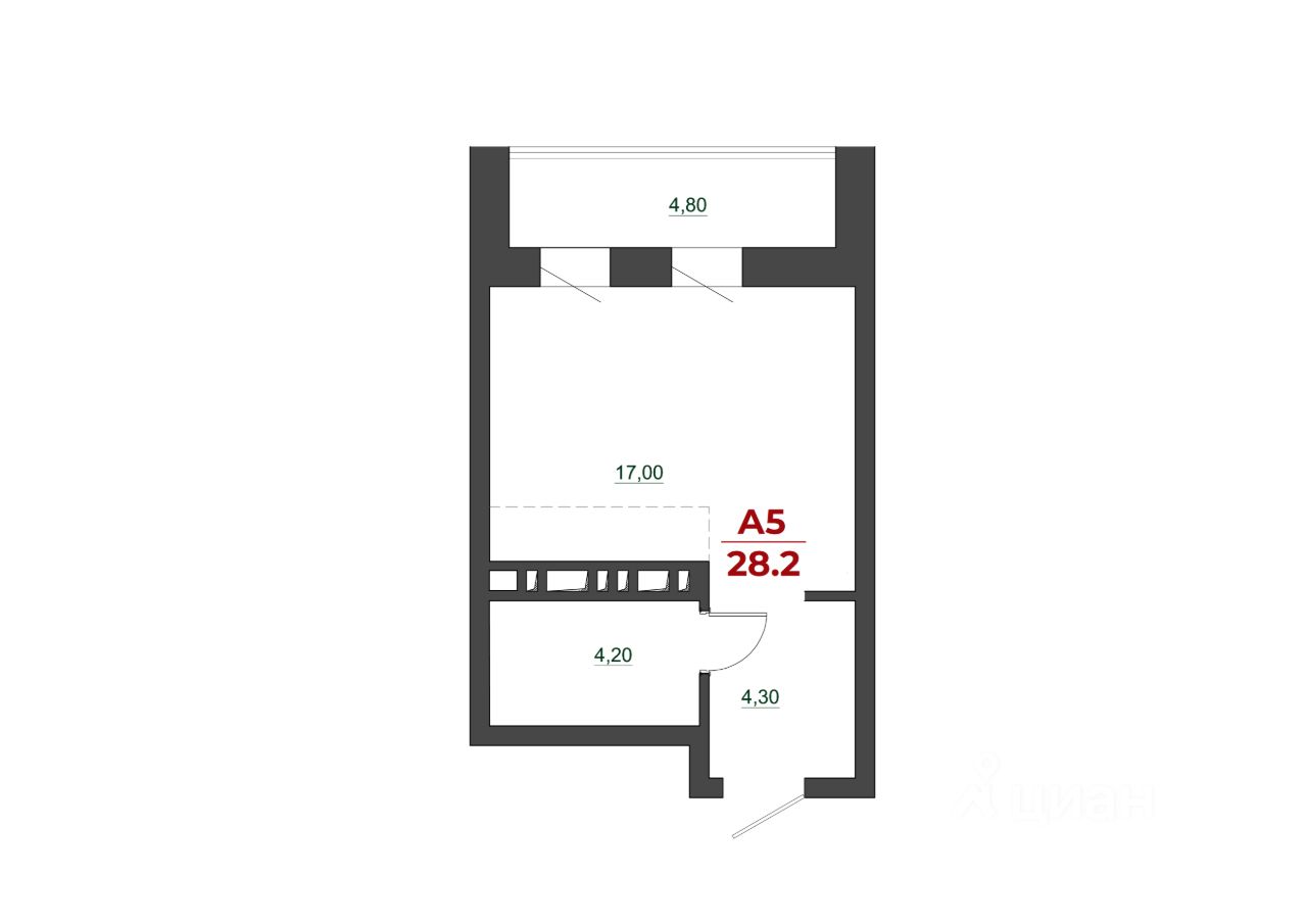 28 м² · Этаж 5 из 21
