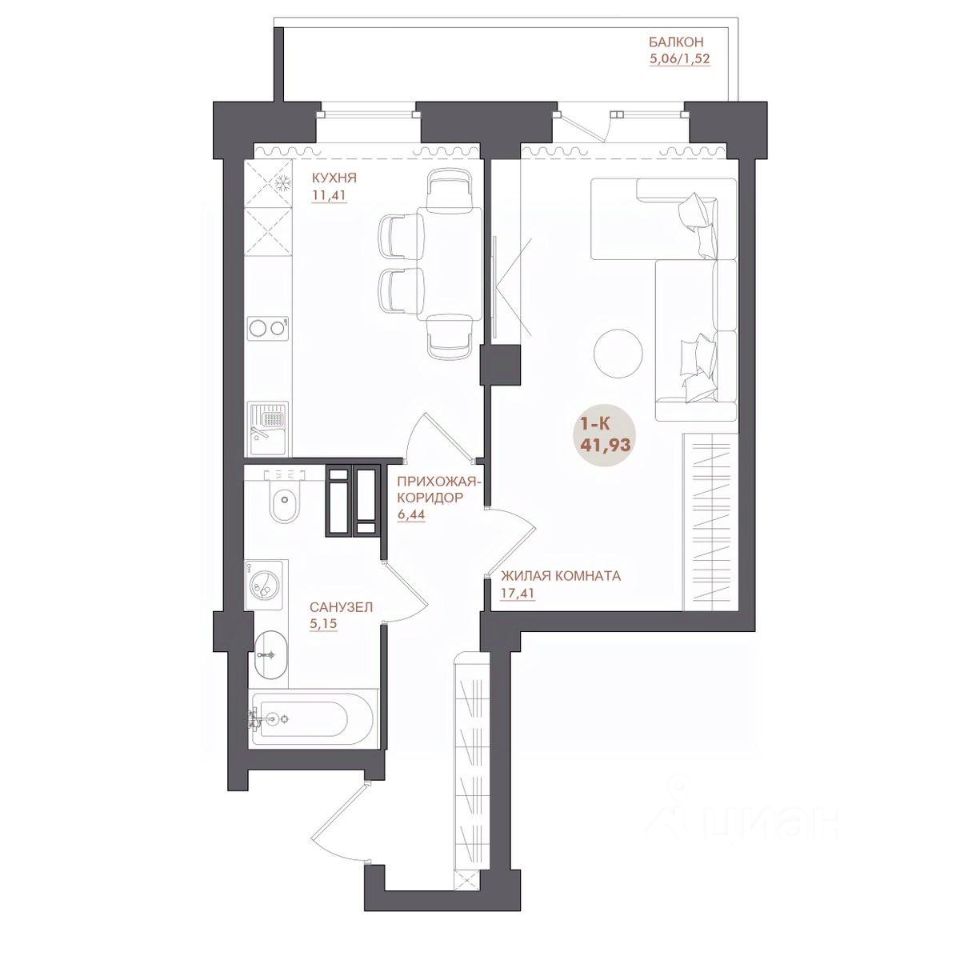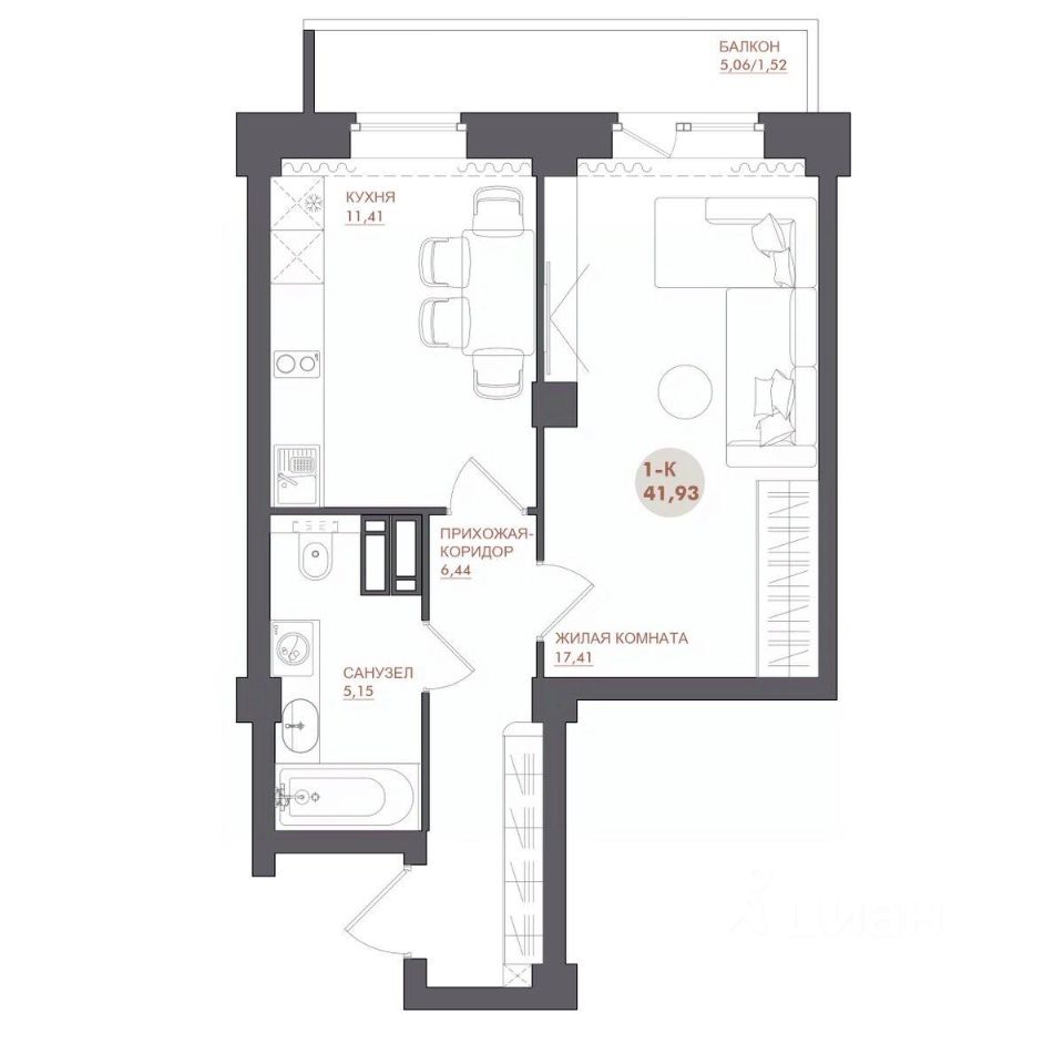 41 м² · Этаж 6 из 17