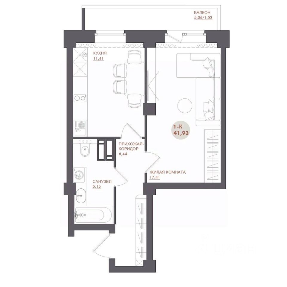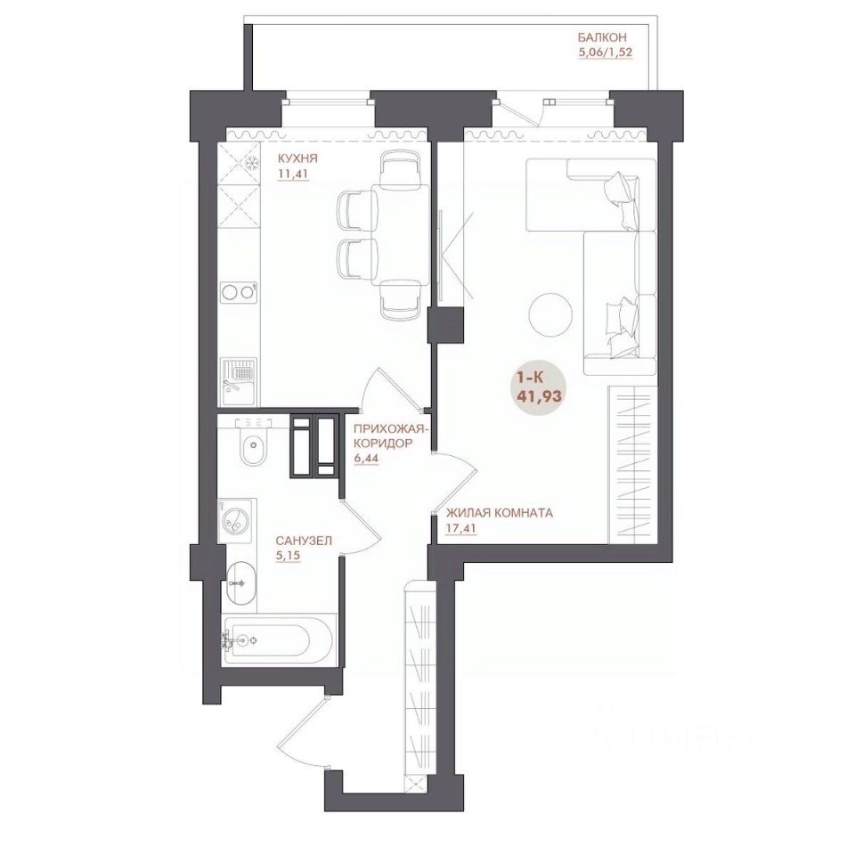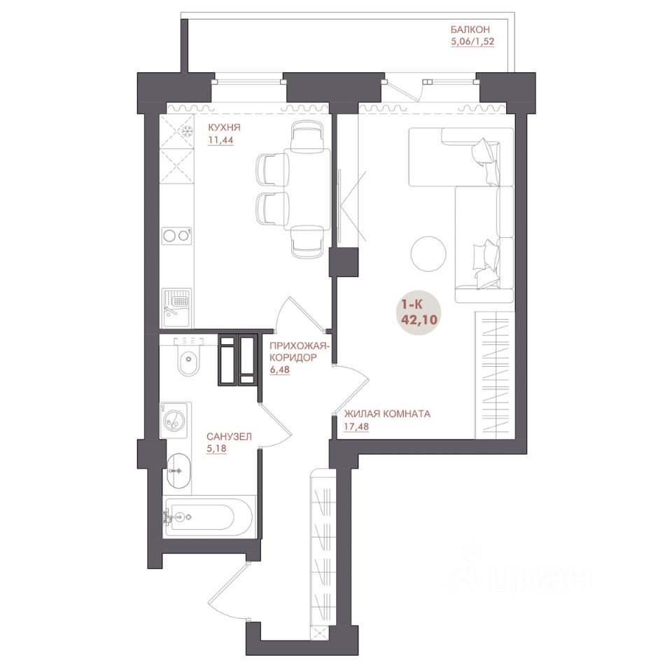 42 м² · Этаж 11 из 17