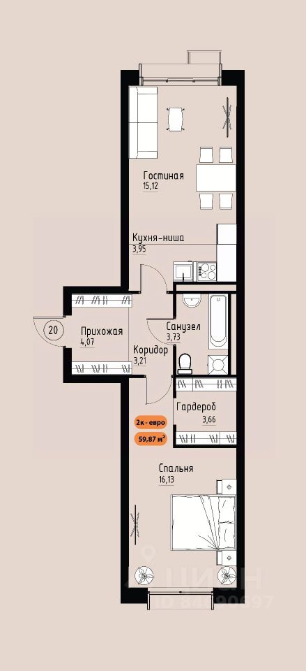 20 м² · Этаж 4 из 17