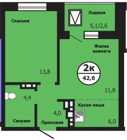 Продаётся 2-комнатная квартира в строящемся доме (Дом 11), срок сдачи: IV-кв. 2026, общей площадью 55.76 кв.м., на 8 этаже. Расположение, транспортная доступность Жилой комплекс ''Нанжуль-Солнечный'' - это квартал, в состав которого входит четырнадцать панельных зданий бюджетного класса высотой от 16 до 26 этажей, а также множество инфраструктурных объектов. Новостройка находится на северо-восточной окраине города, в Советском районе, на территории микрорайона Солнечный, рядом с Молодежным проспектом, улицами Соколовская, Ерофеевская, проспектом 60-летия образования СССР и Енисейским трактом. Путь от ''Нанжуль-Солнечного'' до центральной части города займет около получаса. За пять минут от комплекса можно доехать до железнодорожной станции Красноярск-Северный. Инфраструктура Собственная инфраструктура ''Нанжуль-Солнечного'' включает в себя: ФОК, взрослую и детскую поликлиники, женскую консультацию, несколько детских садов, общеобразовательную школу, а также офисы, магазины, сервисные и оздоровительные учреждения на нижних этажах и во встроенно-пристроенных помещениях. Рядом с кварталом находятся: детские сады 112, 328, 326, частный детский сад ''Сорванцы'', аква-клуб ''Утята'', детская больница 8, детская поликлиника 1, городская больница 2, родильный дом 1, почта, филиал Сбербанка, школы 144, 139, 134, рынок ''Простоквашино'', супермаркет ''Командор'', магазины ''Солнечный'', ''Березовский'', ''Ярмарка'', пансионат ''Солнечный''. За пять минут от ''Нанжуль-Солнечного'' можно доехать до инфраструктуры, расположенной около железнодорожной станции Красноярск-Северный, в микрорайоне Метростроитель: торговые центры, гипермаркеты, гастроном ''Красный Яр'', супермаркет ''Командор'', спорткомплекс ''Красноярск''. В пятнадцати минутах езды от комплекса находится микрорайон ''Взлетка'', в котором работают: крупнейшие торгово-развлекательные центры Красноярска ''Планета'' и ''Июнь'', торговые центры ''Взлетка Плаза'', Dommer, торговый комплекс ''Авиатор'', торгово-офисный комплекс ''Арбат'', гипермаркеты ''Лента'', ''Декатлон'', ''Леруа Мерлен'', международный выставочно-деловой центр ''Сибирь'', бизнес-центры ''Весна'', ''Сирус'', 30-этажный деловой центр ''Первая башня'', Институт психолого-педагогического образования, рынок ''Новая взлетка'', Енисейский рынок, ледовый дворец ''Кристалл''. Экологическая обстановка в месте расположения квартала хорошая. Комплекс находится на окраине города, поблизости от пригородных зон, лесов и озер, вдали от промышленных предприятий, на некотором расстоянии от крупных автотрасс. Надежность застройщика Жилой комплекс ''Нанжуль-Солнечный'' - это масштабный проект созданной в 1989 году красноярской компании ''Сибиряк''. Это одна из самых крупных строительных компаний Красноярска, на счету которой десятки реализованных проектов. Компания ''Сибиряк'' строит не только жилые дома, но и детские сады, больницы и спортивные объекты (в частности, она построила несколько объектов для Всемирной зимней Универсиады 2019 года). Помимо ''Нанжуль-Солнечного'' на счету компании ''