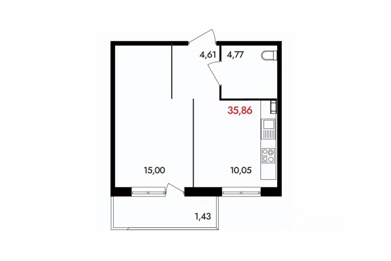 35 м² · Этаж 14 из 18