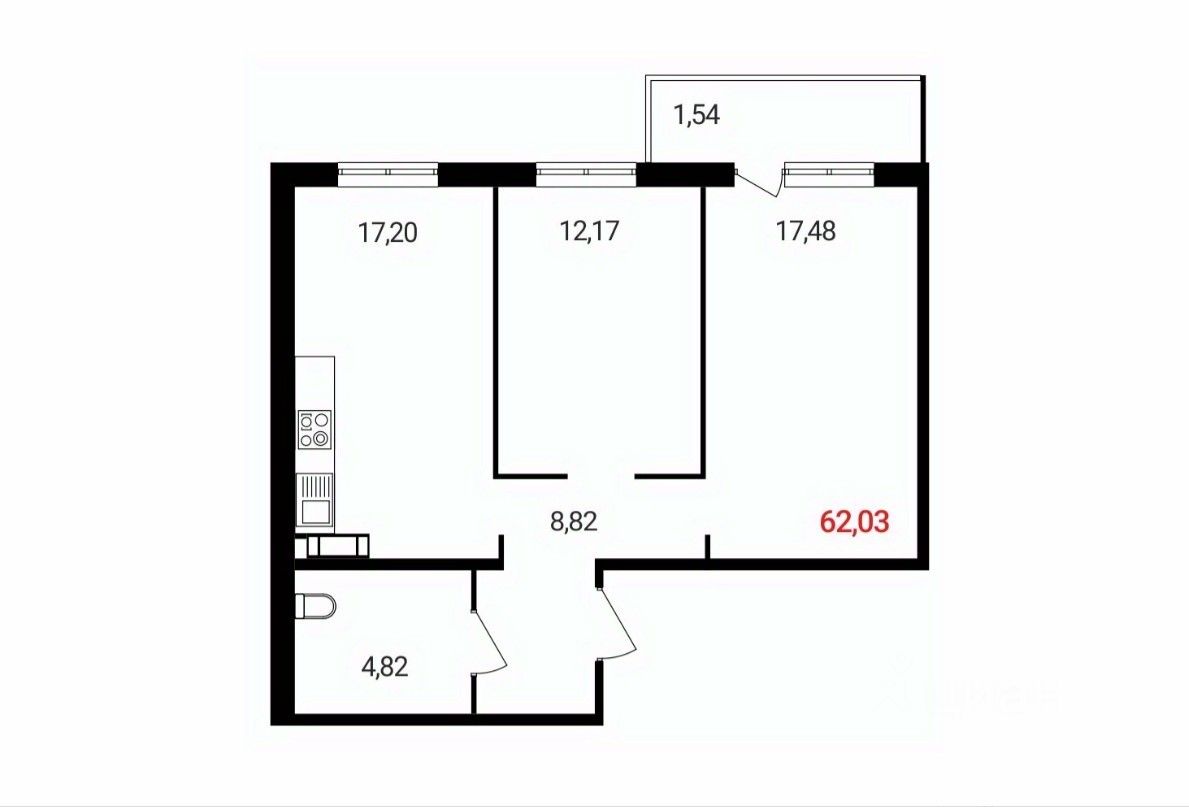 62 м² · Этаж 8 из 18