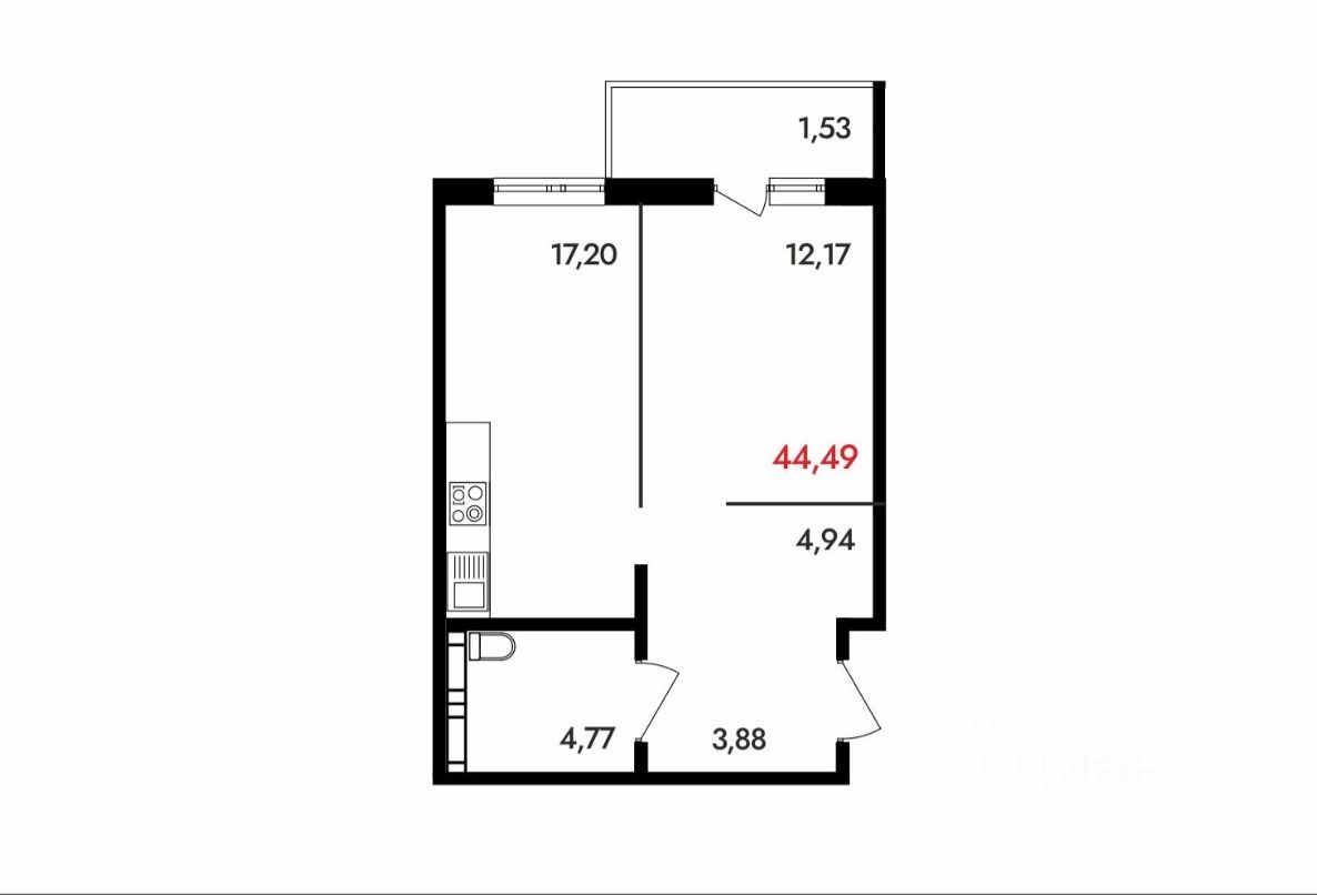 44 м² · Этаж 15 из 18