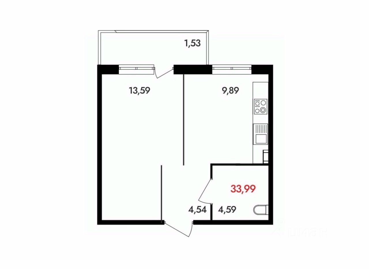 34 м² · Этаж 13 из 18