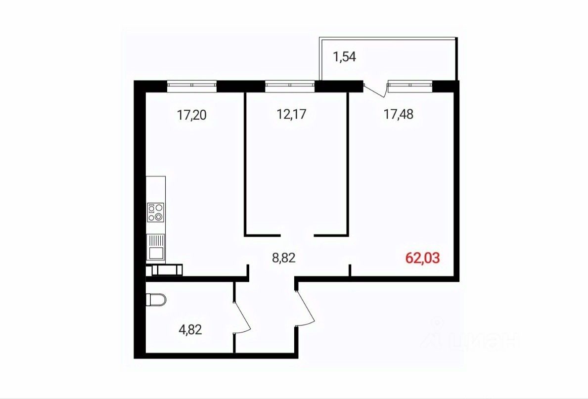 62 м² · Этаж 9 из 18