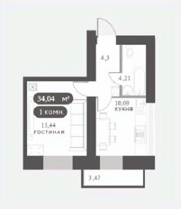 34 м2