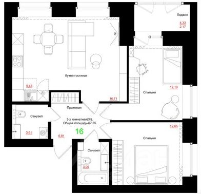 67 м² · Этаж 8 из 9