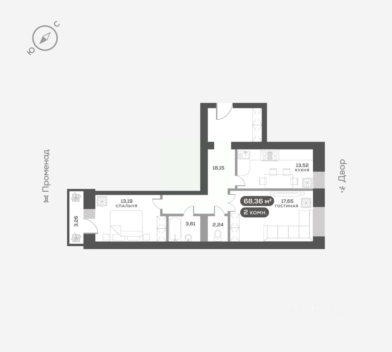 68 м² · Этаж 8 из 16