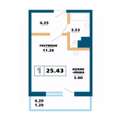 Продаётся 1-комнатная квартира в строящемся доме (Дом 12), срок сдачи: IV-кв. 2027, общей площадью 25.43 кв.м., на 5 этаже. Расположение, транспортная доступность Жилой комплекс ''Нанжуль-Солнечный'' - это квартал, в состав которого входит четырнадцать панельных зданий бюджетного класса высотой от 16 до 26 этажей, а также множество инфраструктурных объектов. Новостройка находится на северо-восточной окраине города, в Советском районе, на территории микрорайона Солнечный, рядом с Молодежным проспектом, улицами Соколовская, Ерофеевская, проспектом 60-летия образования СССР и Енисейским трактом. Путь от ''Нанжуль-Солнечного'' до центральной части города займет около получаса. За пять минут от комплекса можно доехать до железнодорожной станции Красноярск-Северный. Инфраструктура Собственная инфраструктура ''Нанжуль-Солнечного'' включает в себя: ФОК, взрослую и детскую поликлиники, женскую консультацию, несколько детских садов, общеобразовательную школу, а также офисы, магазины, сервисные и оздоровительные учреждения на нижних этажах и во встроенно-пристроенных помещениях. Рядом с кварталом находятся: детские сады 112, 328, 326, частный детский сад ''Сорванцы'', аква-клуб ''Утята'', детская больница 8, детская поликлиника 1, городская больница 2, родильный дом 1, почта, филиал Сбербанка, школы 144, 139, 134, рынок ''Простоквашино'', супермаркет ''Командор'', магазины ''Солнечный'', ''Березовский'', ''Ярмарка'', пансионат ''Солнечный''. За пять минут от ''Нанжуль-Солнечного'' можно доехать до инфраструктуры, расположенной около железнодорожной станции Красноярск-Северный, в микрорайоне Метростроитель: торговые центры, гипермаркеты, гастроном ''Красный Яр'', супермаркет ''Командор'', спорткомплекс ''Красноярск''. В пятнадцати минутах езды от комплекса находится микрорайон ''Взлетка'', в котором работают: крупнейшие торгово-развлекательные центры Красноярска ''Планета'' и ''Июнь'', торговые центры ''Взлетка Плаза'', Dommer, торговый комплекс ''Авиатор'', торгово-офисный комплекс ''Арбат'', гипермаркеты ''Лента'', ''Декатлон'', ''Леруа Мерлен'', международный выставочно-деловой центр ''Сибирь'', бизнес-центры ''Весна'', ''Сирус'', 30-этажный деловой центр ''Первая башня'', Институт психолого-педагогического образования, рынок ''Новая взлетка'', Енисейский рынок, ледовый дворец ''Кристалл''. Экологическая обстановка в месте расположения квартала хорошая. Комплекс находится на окраине города, поблизости от пригородных зон, лесов и озер, вдали от промышленных предприятий, на некотором расстоянии от крупных автотрасс. Надежность застройщика Жилой комплекс ''Нанжуль-Солнечный'' - это масштабный проект созданной в 1989 году красноярской компании ''Сибиряк''. Это одна из самых крупных строительных компаний Красноярска, на счету которой десятки реализованных проектов. Компания ''Сибиряк'' строит не только жилые дома, но и детские сады, больницы и спортивные объекты (в частности, она построила несколько объектов для Всемирной зимней Универсиады 2019 года). Помимо ''Нанжуль-Солнечного'' на счету компании ''