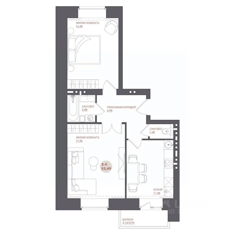 55 м² · Этаж 11 из 12