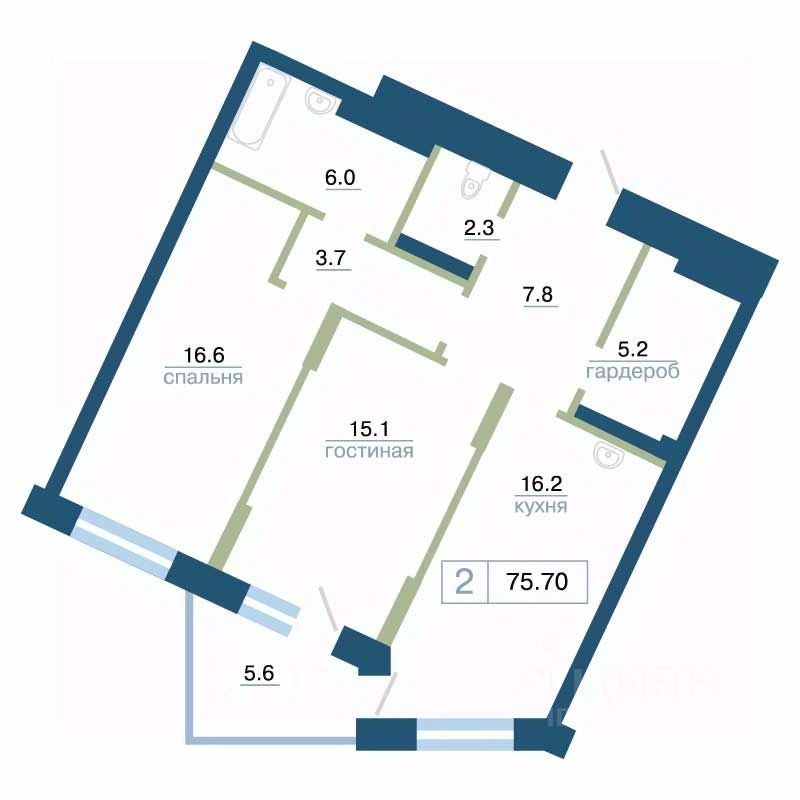 75 м² · Этаж 14 из 24