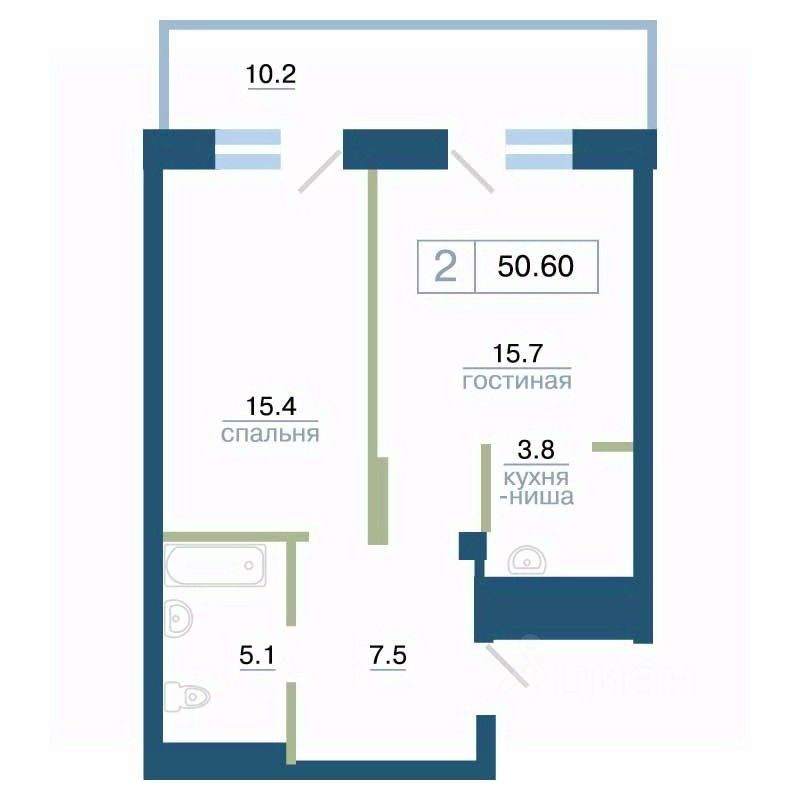 57 м² · Этаж 15 из 24