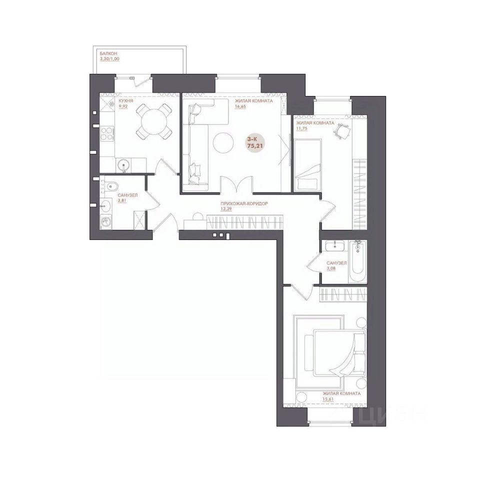 75 м² · Этаж 1 из 12