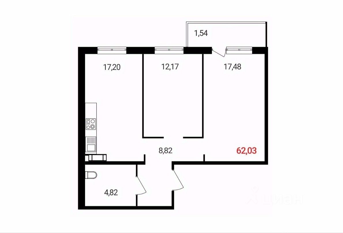 62 м² · Этаж 11 из 18
