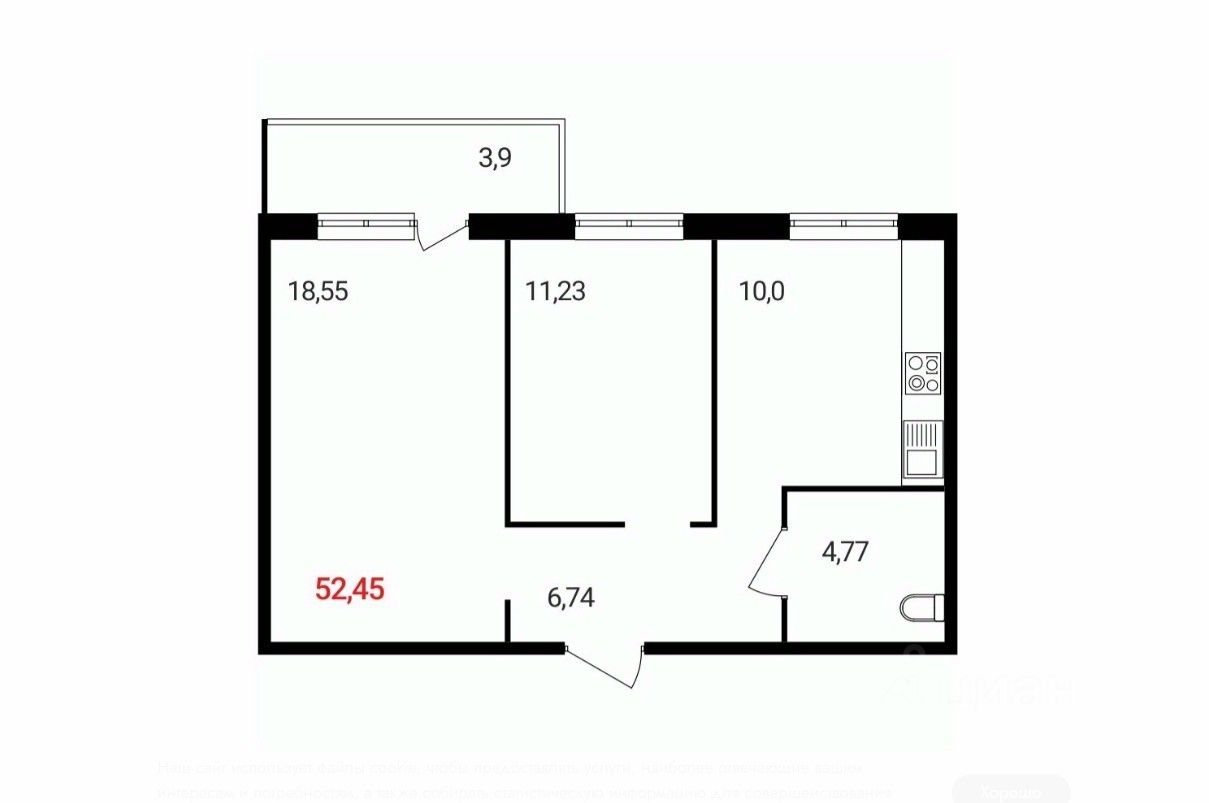 52 м² · Этаж 12 из 18