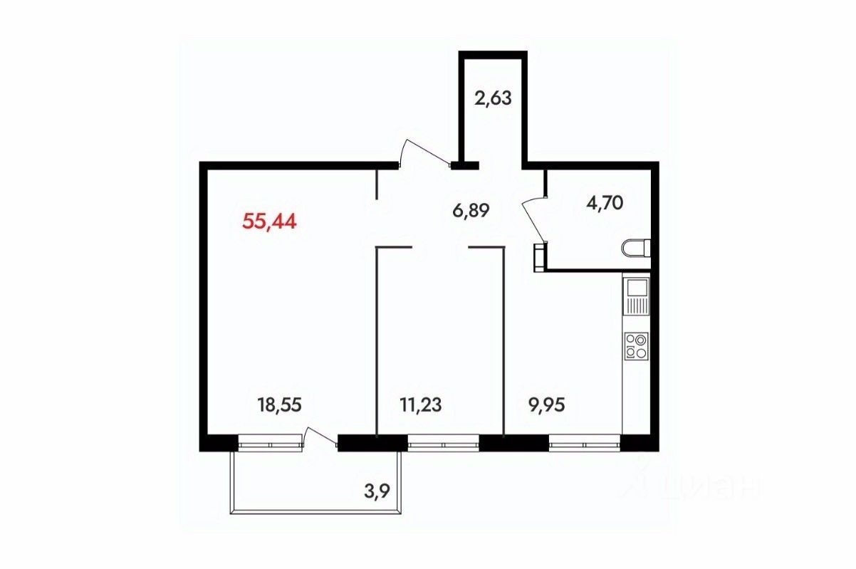 55 м² · Этаж 11 из 18